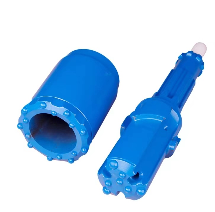 Tungsten Carbide Double Heel DTH Hammer is double casing system casing crown bit and percussion bit, double head rotary percussive casingsystem utilizes a rotary head to drive the outer casing equipped with atungsten carbide crown and a hydraulic drifter to drive the inner drill stringe quipped with a percussive drill bit. This is an excellent method for drilling straight holes in varying ground conditions. The water and compressed air canbe both provided as power.